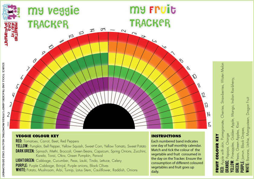 the day on the Tracker. Ensure the consumption of different coloured vegetables and fruit goes updaily.