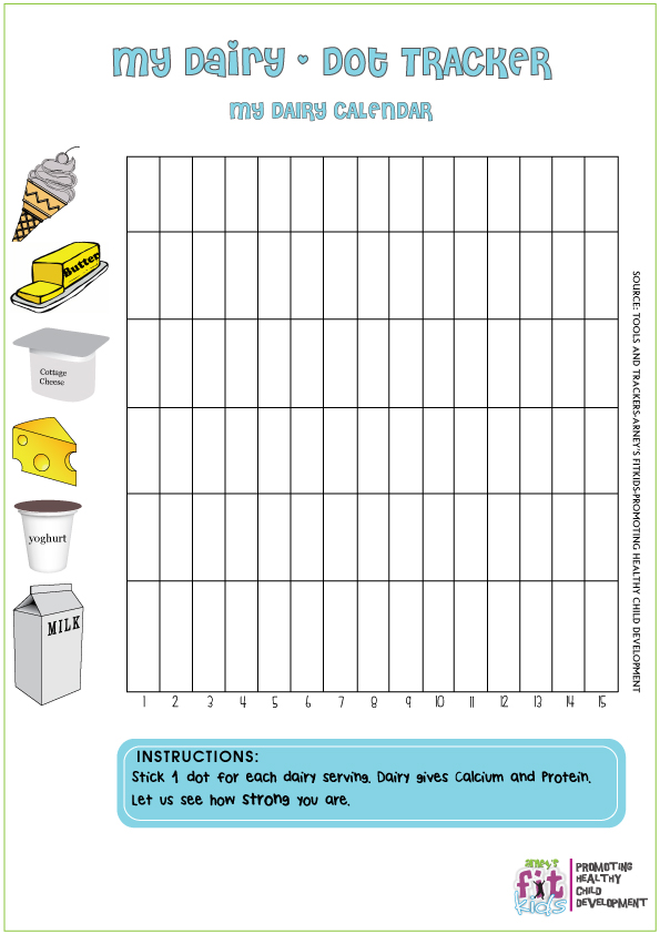 Stick 1 Dot for each dairy service. Dairy gives Calcium and Protein. Let us see how strong you are.