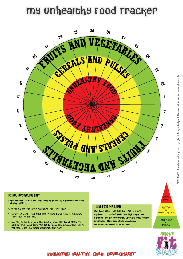Tracker tracks the Unhealthy Food consumed specially during the holidays. Colour the Junk Food are in RED if junk food item is consumed any time in the day