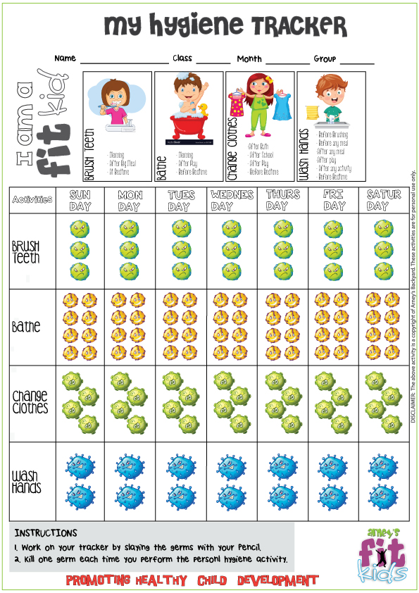 Work on your Tracker by slaying the germs with your pencil. Kill one germ each time you perform the personal hygiene activitiy