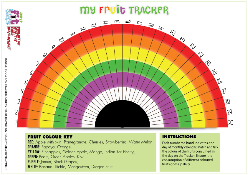 TICK mark on all the fruits you have consumed during the month. Days and Fruits are mentioned on the tracker for your reference.