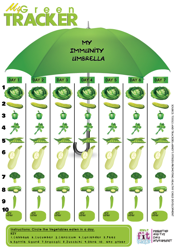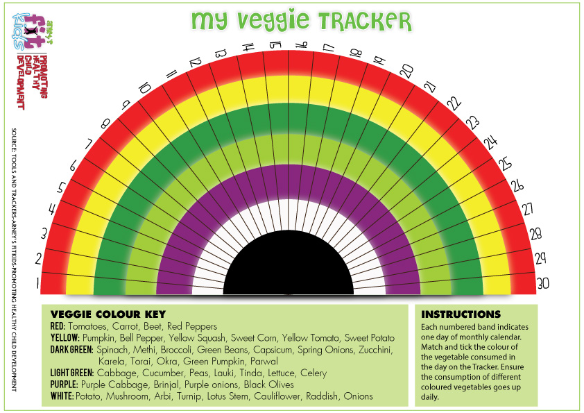 TICK mark on all the Vegetables you have consumed during the month. Days and Vegetables are mentioned on the tracker for your reference.
